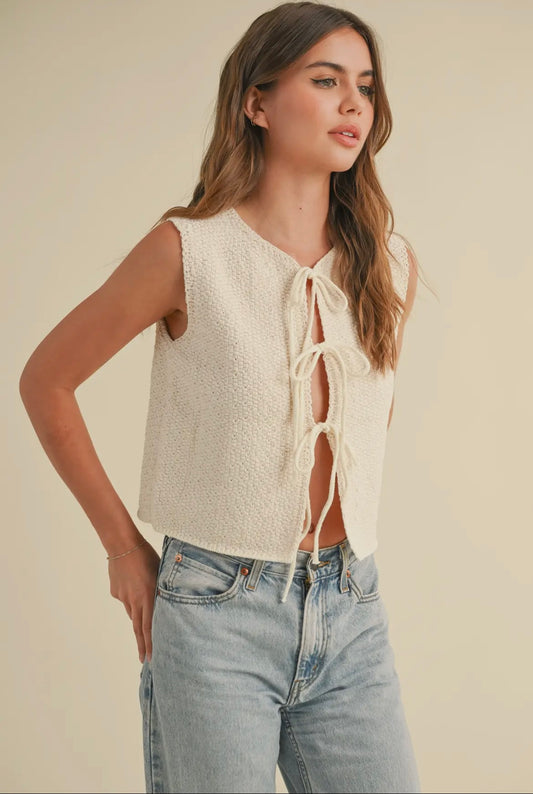 Jingle & Mingle - Front Tie Knit Top CREAM