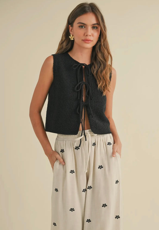 Jingle & Mingle - Front Tie Knit Top BLACK