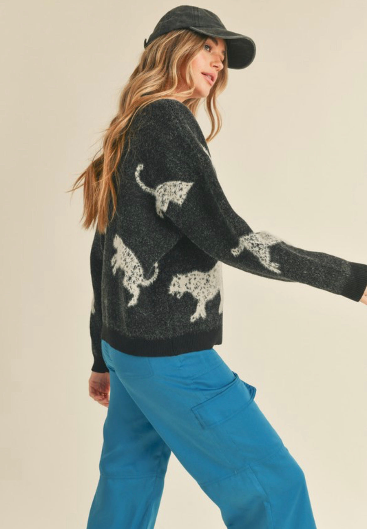 This Black Leopard Sweater combines bold style with ultimate comfort. Crafted from soft, cozy fabric, it offers warmth and a relaxed fit, perfect for chilly days. The striking leopard print adds a touch of wild sophistication, making it an eye-catching yet versatile piece. Whether layered over your favorite jeans or paired with leggings, this sweater promises both comfort and flair. Ideal for casual outings or cozy nights in, it's a must-have for any wardrobe.